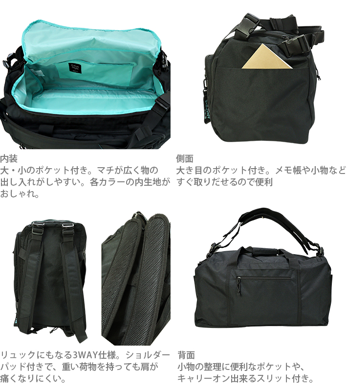 1つで、リュック、ショルダーバッグ、ボストンバッグとして使える多機能バッグです♪