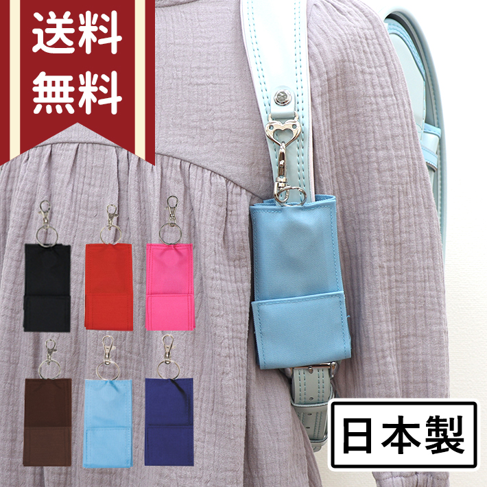 小学生 男の子 女の子 子ども こども 子供 シンプル 無地 カバー 通学 小物 防犯 紛失防止 安全 面ファスナー キーホルダー 黒 赤 茶色 水色 紺 目立たない 伸びる 入学 卒園 お祝い