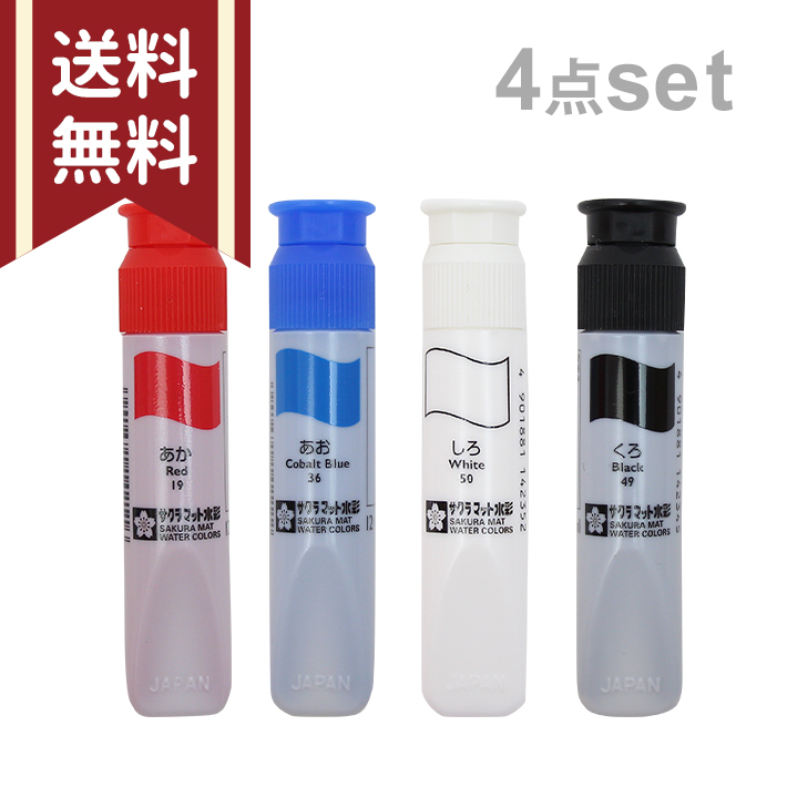 サクラマット 水彩絵の具 12ml 4色セット【あか・あお・しろ・くろ】 小学生 小学校 サクラ えのぐ 単品 単色 4560182256986 [M便 1/4]