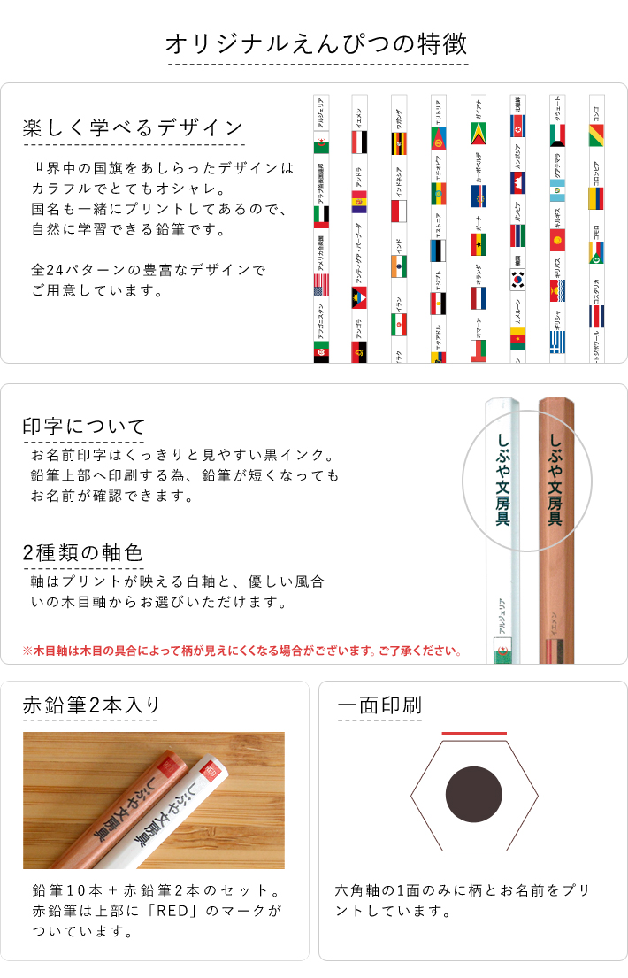 シブヤオリジナル鉛筆 2B 12本組 国旗 2柄 クリアケース付き sb-pencil07 名入れ・メール便送料無料[M便 1/6]