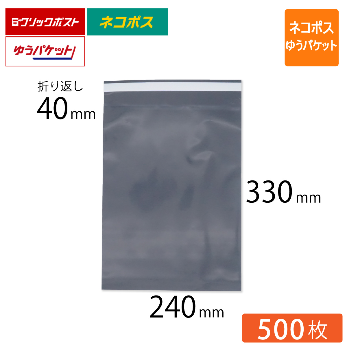 宅配ビニール袋 A4 ネコポス ゆうパケット クリックポスト対応 幅240×高さ330+折り返し40mm 厚さ0.09mm コンポス最厚手 グレー色 500枚