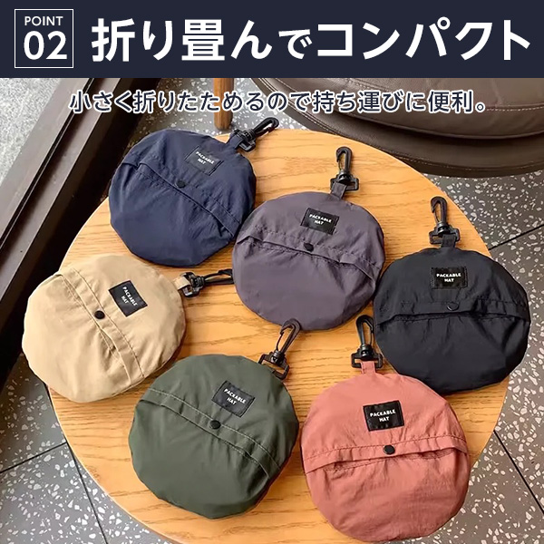 ハット 折りたためる 帽子 レディース アウトドア パッカブル メンズ バケットハット 持ち運び 紫外線 ツバ 紐付き 撥水加工 ブラック シンプル キャンプ 収納