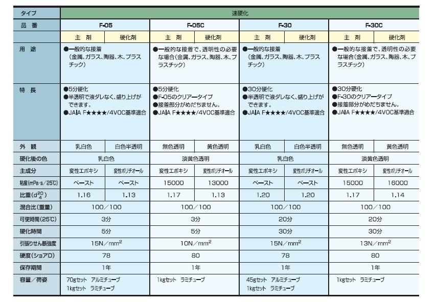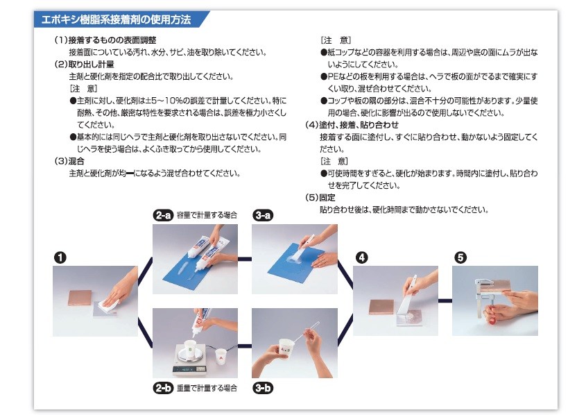 ※ポリエチレン・ポリプロピレン・ナイロン・軟質塩ビ・ゴム・フッ素樹脂・シリコン樹脂には接着できません。