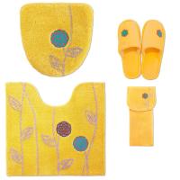 金運を良くするという黄色の普通サイズトイレマット、洗浄便座専用ふたカバー、ペーパーホルダーカバー、スリッパの 4点セット。