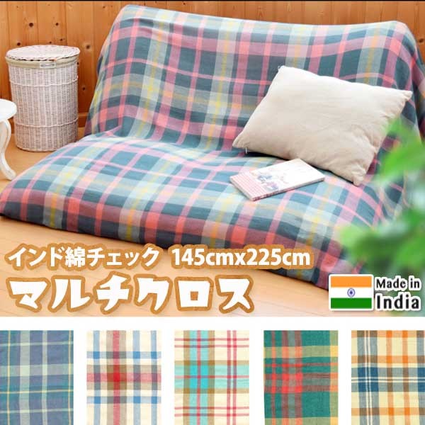 コットン マルチクロス 145cmx225cm チェック ベッドカバー イタワ インド綿 シーツ