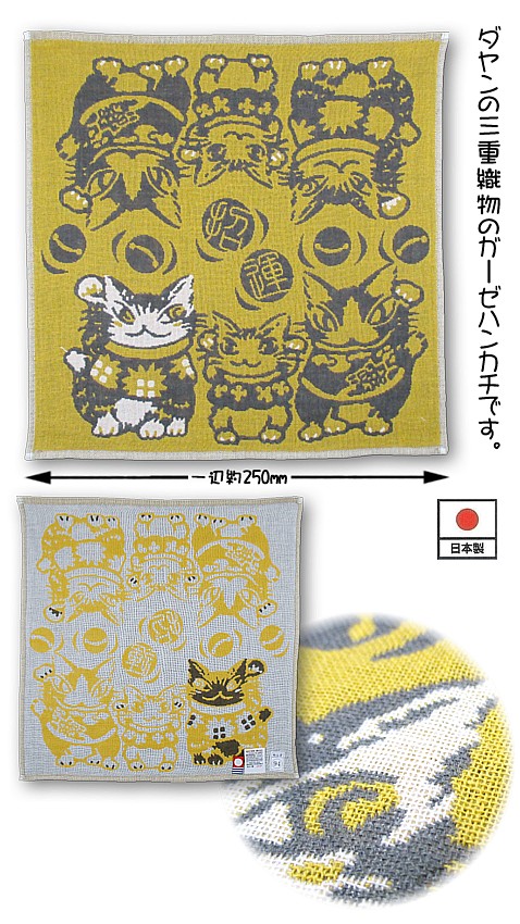 ダヤンGoods・三重ガーゼハンカチ 運まねき