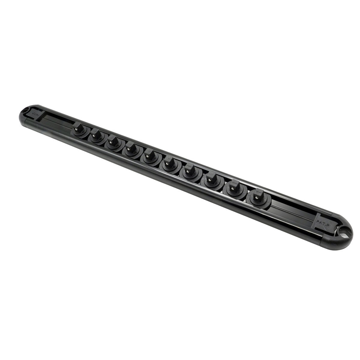 ソケットをコンパクトに収納できるアルミ製レール。