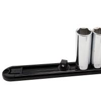 クリップの差込角はソケットレンチと同じボールロック式を採用。ソケットの不用意な抜け落ちを防ぎます。