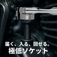■ 高さ16~18mmの超ショートソケットスーパーショートソケットは高さわずか16〜18mm。エンジン周りやフレーム裏など、通常のソケットでは届かない場所でも確実にアクセス可能。自動車・バイクの整備に重宝する一本です。