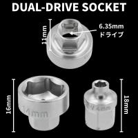 ■ 1つのソケットで、2つの差し込みに対応DUAL DRIVEソケットは、11mmと6.35mm(1/4インチ)の両方の差し込みに対応。狭い場所や奥まったボルトでも、最適なツールに即座に切り替えられる柔軟性が魅力です。