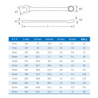 オープンエンドはノンスリップ仕様、ボックスエンドは15°オフセットされた12ポイント面接触仕様のコンビネーションレンチ。