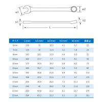 オープンエンドはノンスリップ仕様、ボックスエンドは15°オフセットされた12ポイント面接触仕様のコンビネーションレンチ。