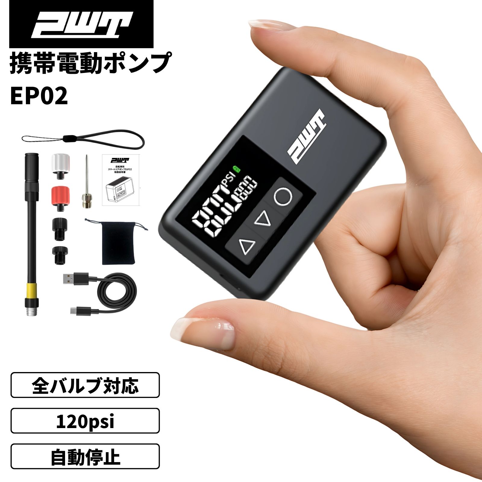 PWT 電動空気入れ 電動エアポンプ 自転車 携帯ポンプ 超小型・軽量 全バルブ対応 仏式/米式/英式 USB充電 自動停止 120psi 827kpa EAP02