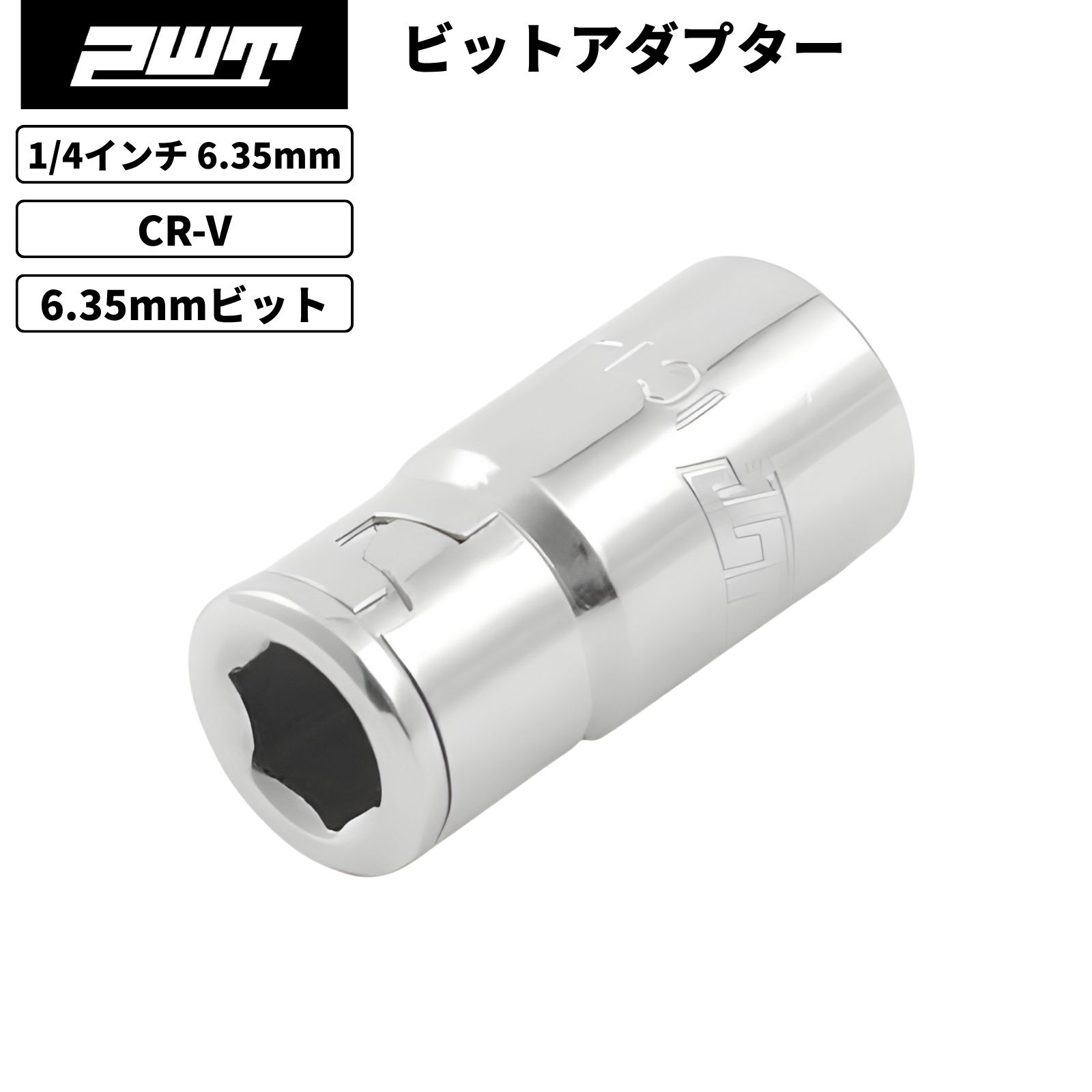 市販の六角ビット(6.35mm)をラチェットハンドルやソケットレンチで使えるようにするアダプターです。 差込角は1/4インチ(6.35mm)。ビットドライバーが手元になくても、手持ちのラチェットでネジ締め作業が可能になり、 自動車整備やDIYの作業効率を高めます。