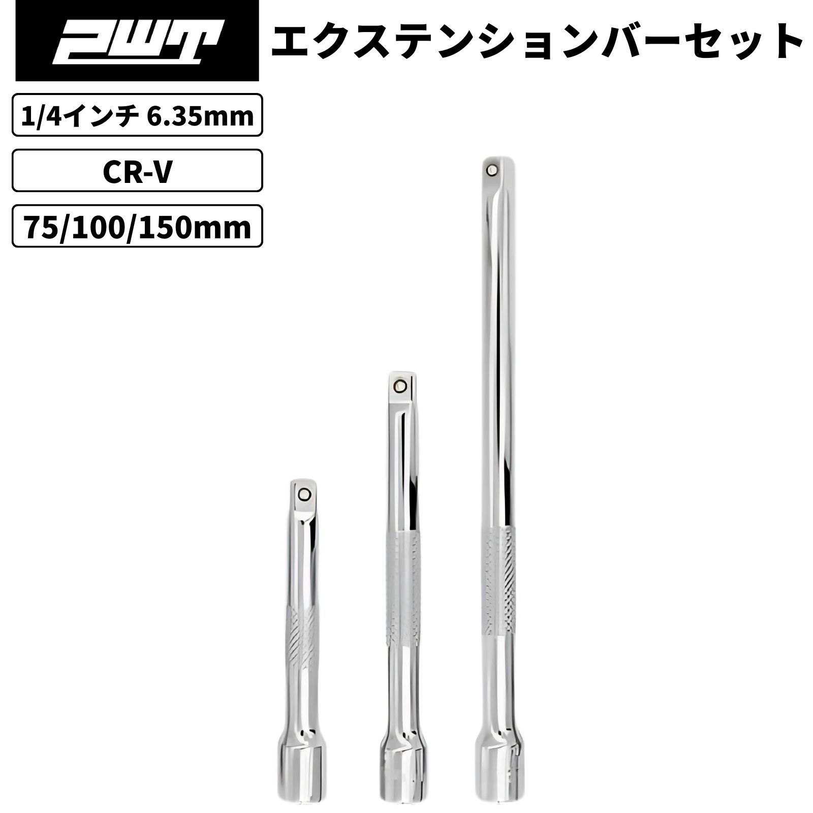 PWT 1/4インチ 6.35mm エクステンションバーセット 75/100/150mm 3本組 クロームバナジウム鋼 車整備 バイク工具 自転車 DIY作業用 IEB14SET