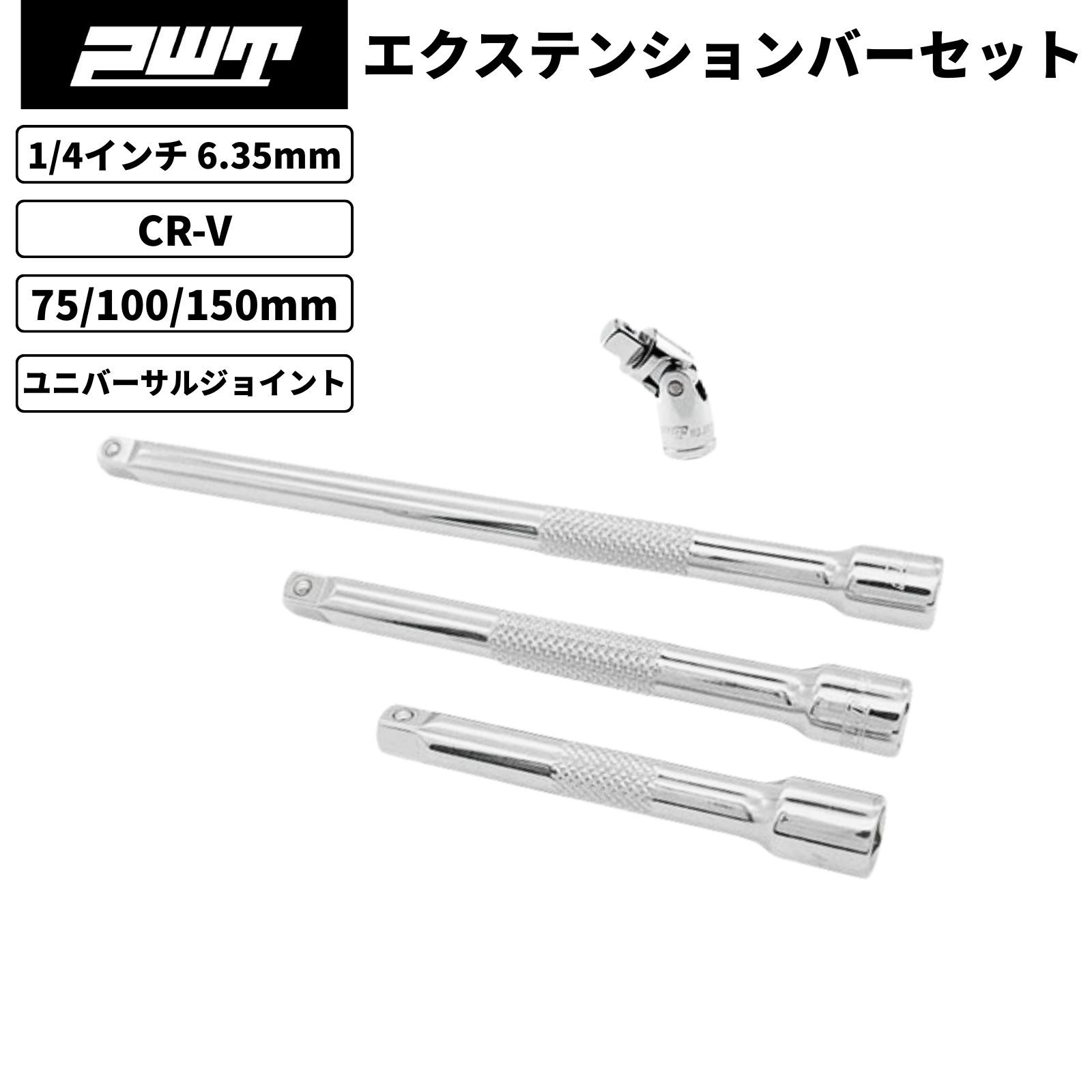 PWT 1/4インチ 6.35mm エクステンションバーセット 75/100/150mm ユニバーサルジョイント 4点セット クロームバナジウム鋼 車整備 バイク工具 自転車 IEB14SET