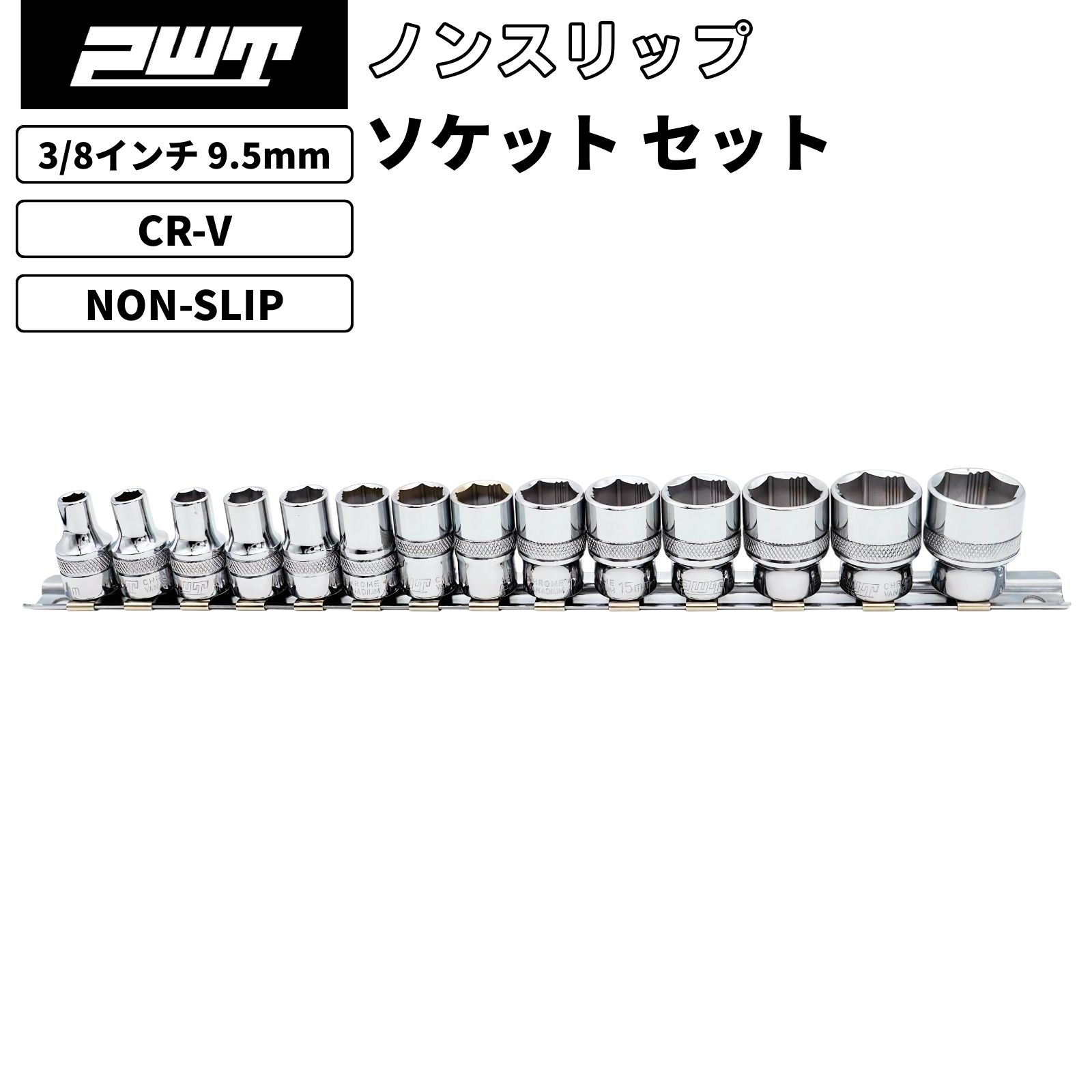 PWT 3/8インチ 9.5mm ノンスリップ ソケットセット 6〜19mm ナメ防止 ソケット工具 車整備 バイク DIY作業用 プロ仕様 INSS38DR
