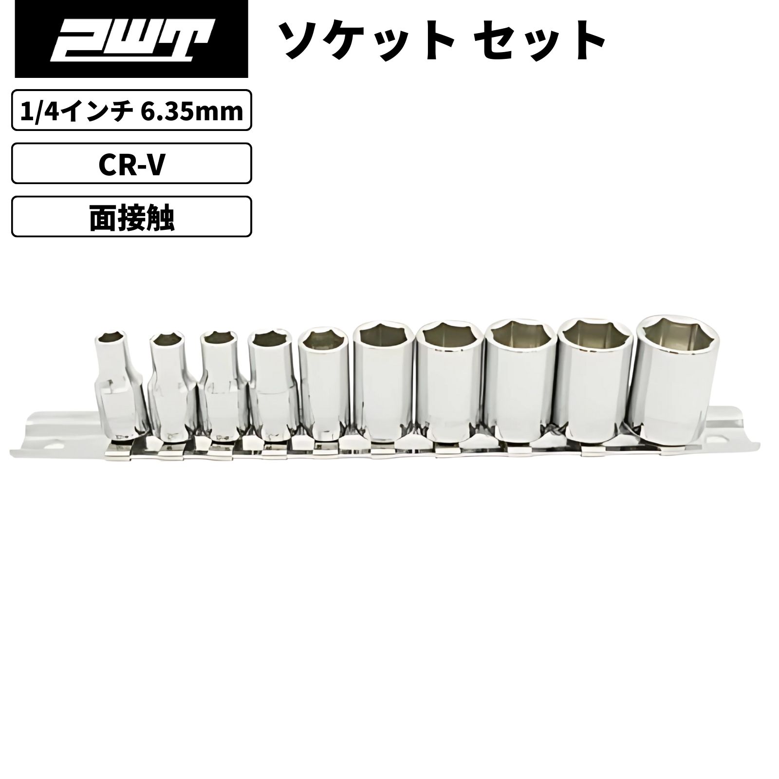 PWT 1/4インチ 6.35mm 六角ソケットセット 10本組 差込 スタンダード 自動車 バイク 整備工具 面接触構造 クロームバナジウム鋼 クロームメッキ仕上げ ISS14SET