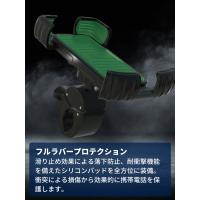 スマホホルダーの中央と四隅にはシリコンパッドを配置。走行中の衝撃からスマートフォンを守り、安定性を高めます。さらに滑り止め付きハンドルバークランプで高速走行時でも安心です。