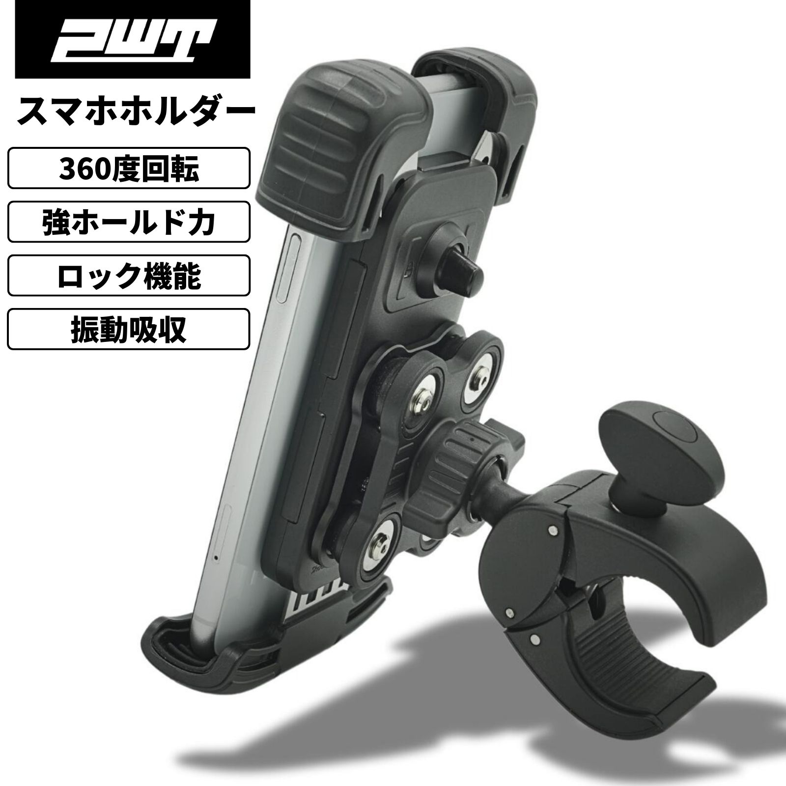 PWT バイク用 防振 スマホホルダー 携帯ホルダー 振動吸収 360度回転 強力固定 自転車 オートバイ対応 ツーリング ナビ利用 ロードバイク クロスバイク YYS680