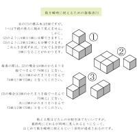 積み木を自在に分割し、集合体として瞬時に数を認識することで、四則演算のすべての基礎が育成されます。この問題は数能力全般の能力育成に効果的で、特に事象の抽象化・概念化の能力育成に効果を発揮します。問題に取り組む際は、単純に1・2・3・・・と数えさせず、数をまとまりとしてとらえる練習をさせてください。