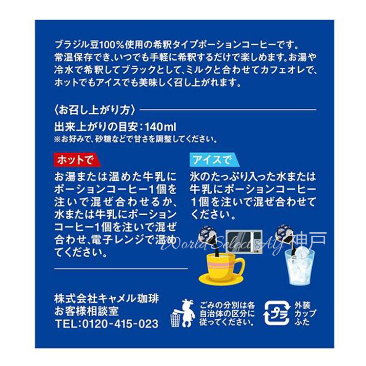ブラジル豆100%使用の希釈タイプポーションコーヒーです。