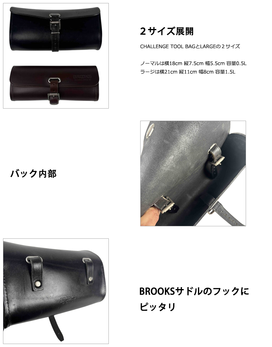 1896年に設計されパテントを取得した上質なレザーを使用したツール用サドルバッグ「CHALLENGE TOOL BAG」の大型モデル。