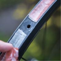 3.バルブホールから始めて、リムを一周させてください。 バルブホールの上はテープを貼らないようにしてください。