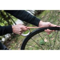 高い耐熱性、耐水性、そして粘着力を兼ね備えた工業グレードのアルカリ性接着剤を採用したチューブラータイヤテープ。1巻きで700Cリムの約1本分です。