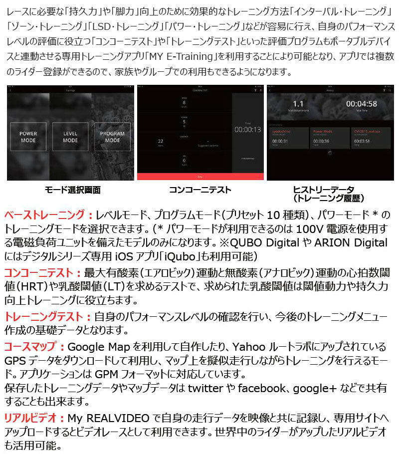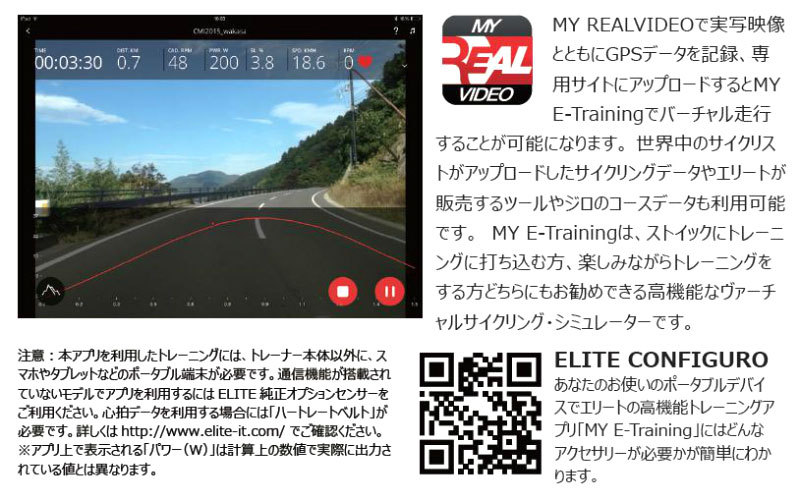 ■iPhone やiPad、Androidデバイスでトレーニング管理が出来る「My E-Training」や実走行データを映像と共に記録し活用できる「My RealVideo」 アプリ6ヶ月無料クーポンつき