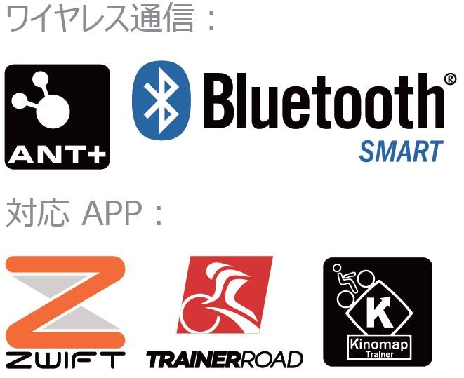 安定性と実走行感の高いQUBOフレームに、リモートコントロール8段階負荷調整レバーがついたパワーマグ負荷ユニットを組み合わせた「キューボ パワーマグ」にANT+/Blutoothワイヤレスセンサーを内蔵したスマート・トレーナー。