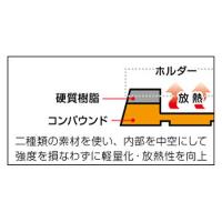2 種の素材を使い、パッド内を中空にして強度を損なわずに軽量化・放熱性を高めたカーボンリム用 ブレーキシュー。