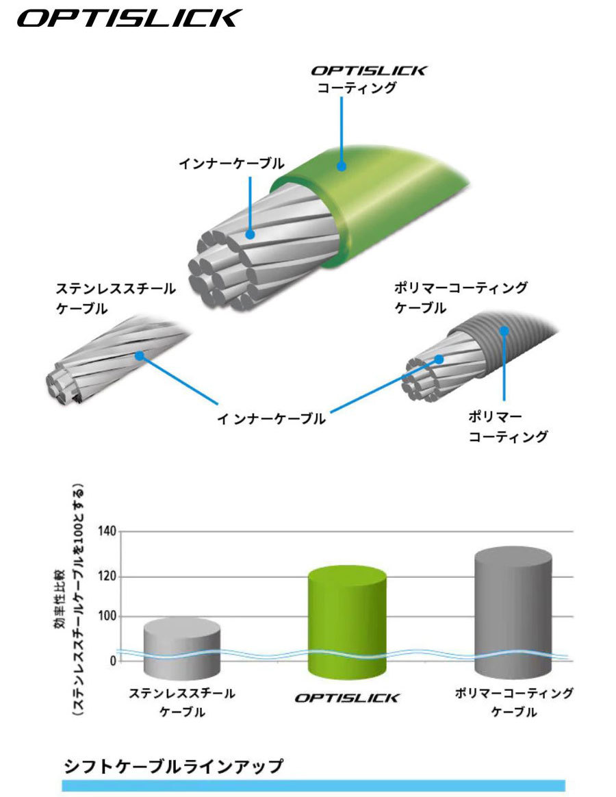 OT-SP41は、インナーケーブルの摩擦を最大限に減らし、操作に対する素早い反応と、軽い力による快適なシフトを実現しました。