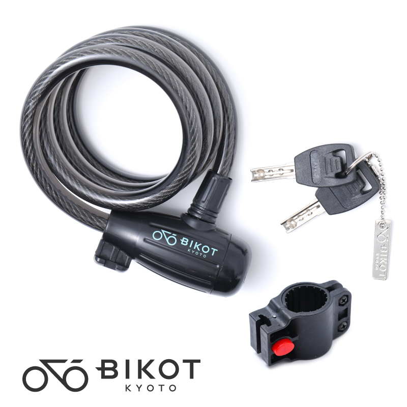 ビコット コイルワイヤーロック 麻の葉チャーム付き ブラケット付 自転車用鍵 BIKOT