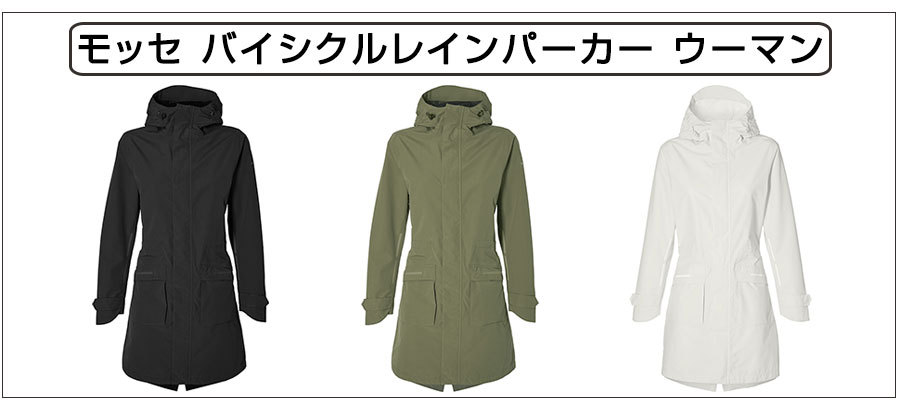 モッセ バイシクルレインパーカーレディース●耐水圧5,000mm、透湿性5,000g/m2、裏地メッシュ付きで通常の雨の中でも濡れない。●蒸れない性能を発揮し、快適なライドを楽しめます。●上質で柔らかなマット生地のため、サイクリングだけでなく普段使いのレインパーカーとしてもご使用いただけます。●ダブルジッパーとウエストラインのおかげでサイクリング時に快適に着こなせます。●ポーチ付きでコンパクトに折りたためます。●素材は2方向に伸縮するポリエステル100%。