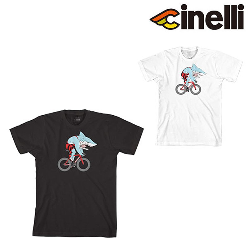 高品質のコットンTシャツは、Cinelliの「Shark」トラックフレームセットにインスパイアされたオリジナルデザインです。