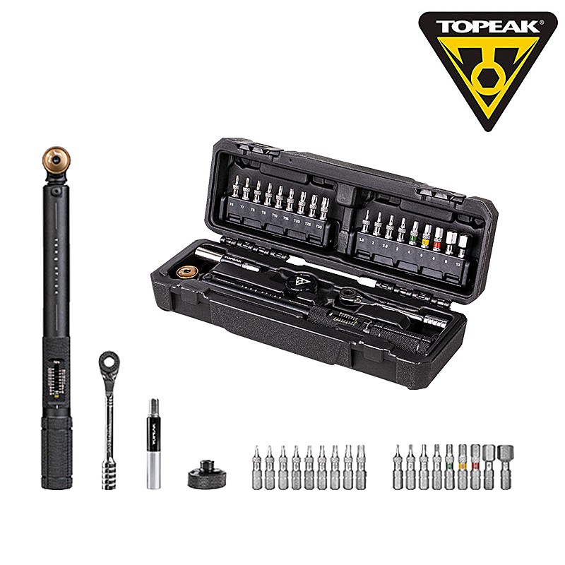 4~20Nm まで対応するトルクレンチ、ラチェット レンチ、早回しに便利なスピードスリーブ ビット ホルダー、指先でボルトを締め込めるフィンガー ビットホルダー、六角ビット 9 種類、トルクスビット 9 種類をストレージボックスにまとめたプロ仕様ツールセット。