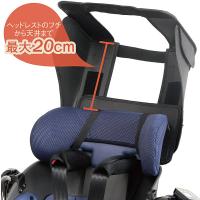 プレートの高さは、一番低く設定して、ヘッドレストのフチからおよそ10cm。一番高くし設定するとヘッドレストのフチからおよそ20cmになります。10cmの間であればお子さまの身長に合わせて、自由に設定することができます。