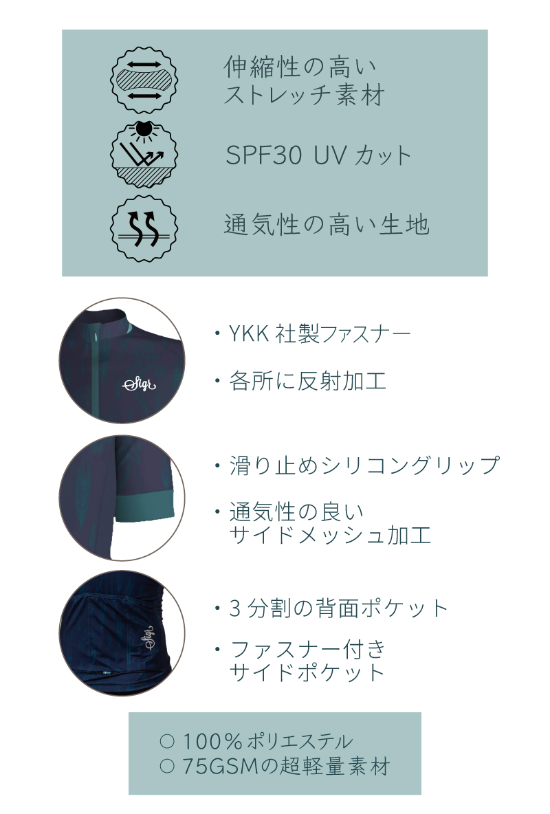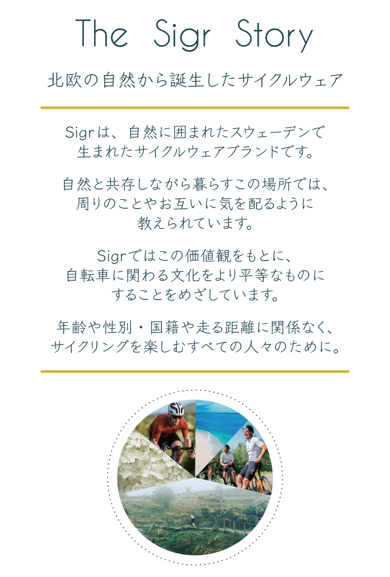 多数のカラーラインナップを誇る、Sigrを代表するサイクルジャージ