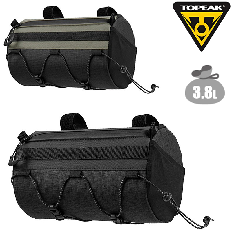 ●前面にMOLLE システムとドローコードを採用したハンドルバーバッグ。