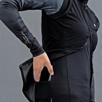 ■特徴: 防風はっ水素材 (背面除く)、ストレッチ、逆開フロントファスナー、背面メッシュ、メッシュポケット (ポケッタブル) (左側面内側)