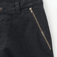 フルレングス、表面は微起毛、ファスナー付きサイドポケット、サドル部分生地二重、ストレッチ、バックポケット