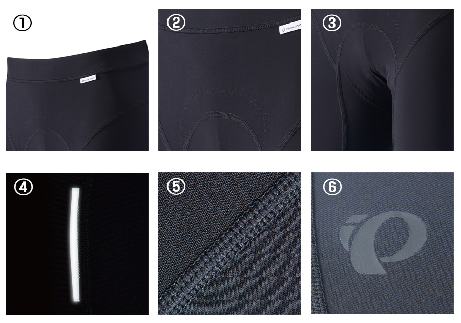 ペダリングの動きを妨げないカットラインと、前側中心に縫い目の無い特殊設計。