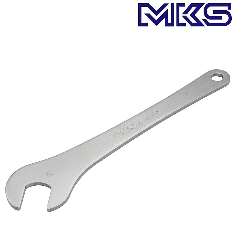 ●15mm口部に45度の角度がつけられており、スパナを差し替えて様々な角度から力をかけることができます。ペダル軸に2面しか掛け面がない場合でも等間隔に4パターン、6面の場合は12パターンもの掛け角度が生まれ、力の掛けやすい角度で操作することが可能です。