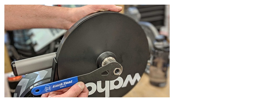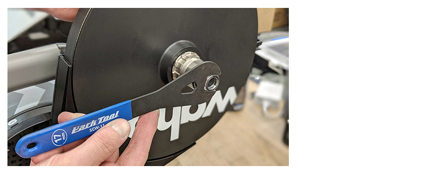 お手持ちの本体の機種をご確認下さい)のコーンレンチでもう片方の手でフライホイールを支えて締めます。