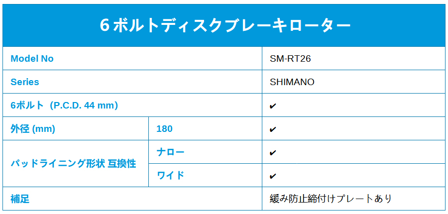 シマノ ディスクブレーキ ローター SM-RT26 (6ボルト)ワイドタイプ 180mm レジンパッド専用 SHIMANO