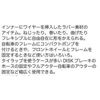 ●24inch: 60.9cm●ラバー素材●インナーにワイヤーを挿入したラバー素材のアイテム。ねじったり、巻いたり、曲げたりフレキシブルに自由自在に形をかえられる。自転車のフレームにコンパクトポンプを付けるときや、フロントホイールとフレームを固定するときなど使い方はいろいろ。タイラップを使うケースが多いDISK ブレーキのホースの固定やフルアウター自転車のアウターの固定など幅広く使用できる。ブレーキアウターをまとめるのに便利な6インチが登場。グランジ(P48 参照)のラインサイド