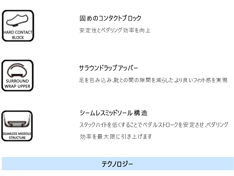 シマノロードコンペティションテクノロジーは、ロードレーシングのために考えられたシューズとペダルの究極の組合わせです。