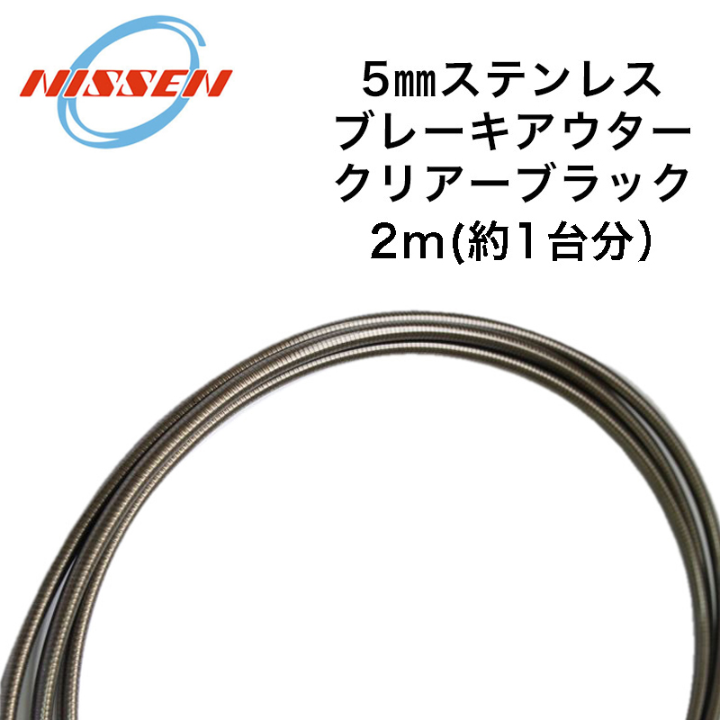 一般的にアウターケーブルのコイル線はスチール製が多いが、このアウターはステンレス製の為、サビに強い。ポリエチレン製のインナーライナーを入れているのでレバーの引きが軽い。ブレーキアウター外径は 5mmとなっており、インナーワイヤーは 1.5mmもしくは 1.6mmが使用可能。●5mmステンレスブレーキアウター●ブレーキ用● 2m(約 1 台分)●ステンレス製