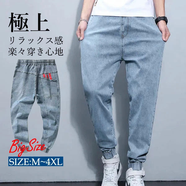 大きいサイズ メンズ デニムパンツ ジョガーパンツ ストレッチ 体型カバー 着痩せ 美脚 デニム ワイドパンツ イージーパンツ スウェットパンツ ジョガーパンツ
